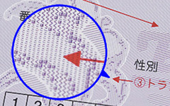 極小の文字は、コピーやスキャンをすると文字がつぶれます。幅広い偽造防止に効果があります。